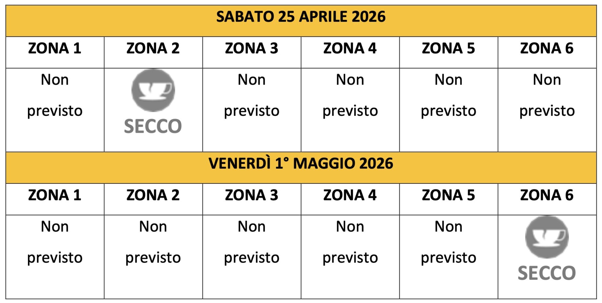 SI RICORDA CHE NEI GIORNI FESTIVI INFRASETTIMANALI IL SERVIZIO DI RACCOLTA DEI